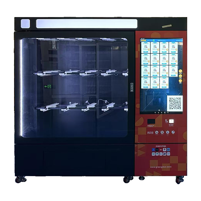 WEIMI Automated Clothes Vending Machine is a versatile solution for selling apparel of all sizes, from socks and caps to jeans, shoes, and XL sweaters. With fully customizable hanging slots, it adapts to your unique products and ensures a seamless 24/7 shopping experience. Perfect for gyms, campuses, retail stores, and travel hubs.